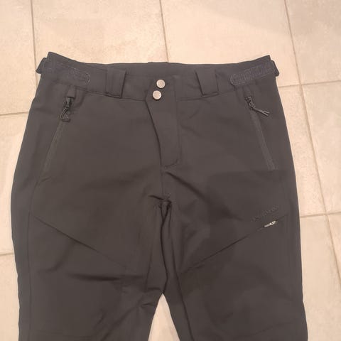 Twentyfour tur bukser i størrelse 40 for kvinner, laget av elastan materiale. Buksene er svarte og har glidelåslommer foran. Designet for komfort og bevegelsesfrihet.