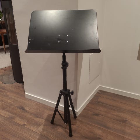 Pent brukt sammenleggbar notestativ, kan justeres i høyden.