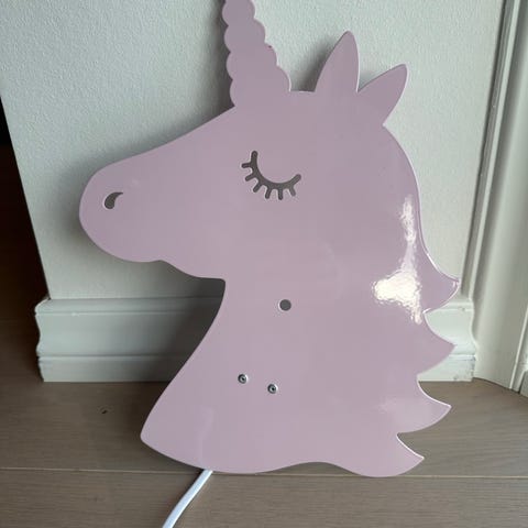 Selger pent brukt rosa/lilla vegglampe med sommerfugl til barnerom.