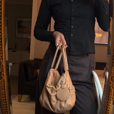 Vurderer å selge min Miu Miu vintage veske. Kjøpt second-hand. Godt brukt, har noen flekker innvendig samt håndtakene er godt brukt og trengs å fikses. Logoen med bokstavene har falt av, kun to igjen. Selges derfor rimelig. Ellers i god stand. Veske charmen følger ikke med.