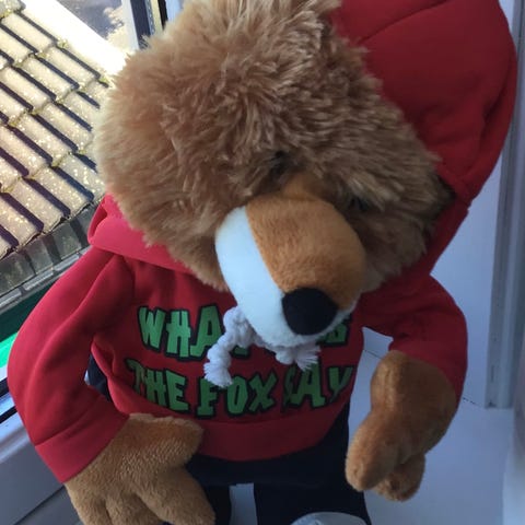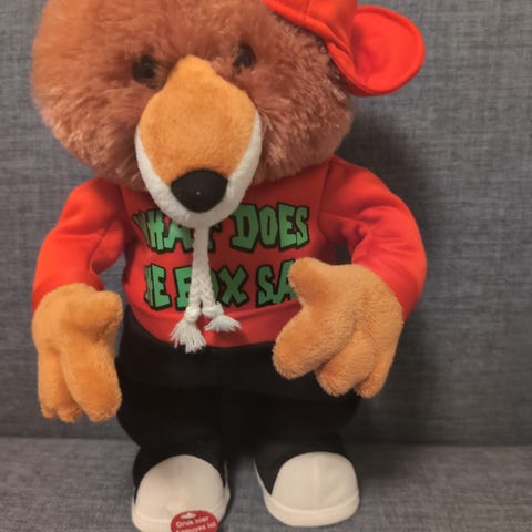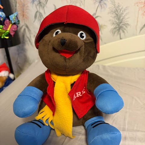 Åre kosedyr med hvit topp med ÅRE-logo, grønt skjerf, og sko. Mykt materiale, egnet som leketøy eller dekorasjon.