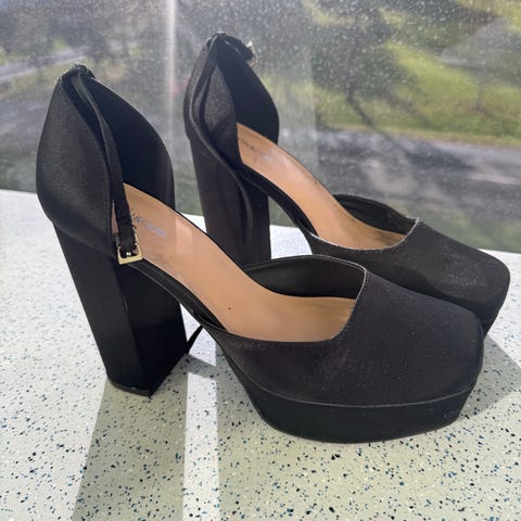 Even&Odd Hæler sko i størrelse 39. Skoene er svarte med høy blokkhæl og har stropp med spenne rundt ankelen. Materialet er syntetisk og gir et stilrent uttrykk. Pris kan diskuteres😊