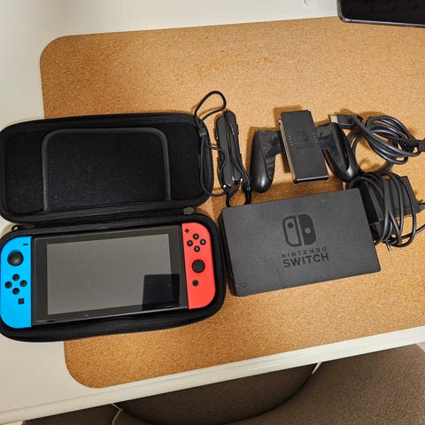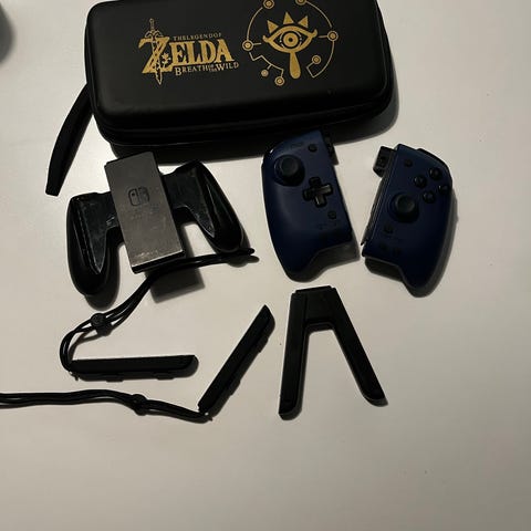 Rød og blå joy con grip til Nintendo Switch. Kjøpt på nett, ikke originale.