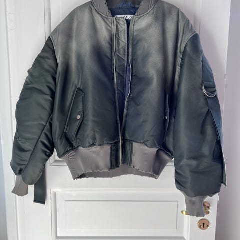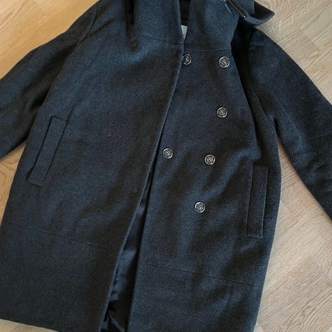 Acne Studios Annet yttertøy i størrelse XS for dame. Jakken er grå og laget av ull. Den har knappelukking og to lommer foran. Egnet som yttertøy i kaldere vær.