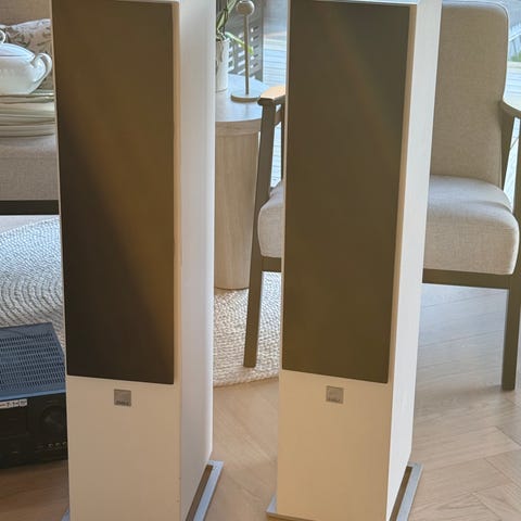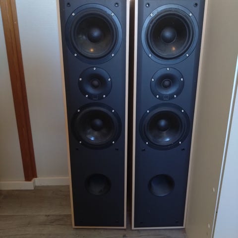 Velholdte og vellydende Dali-høyttalere med mulighet for å fylle bunnkamrene med sand for forbedret bassgjengivelse ved lave frekvenser.