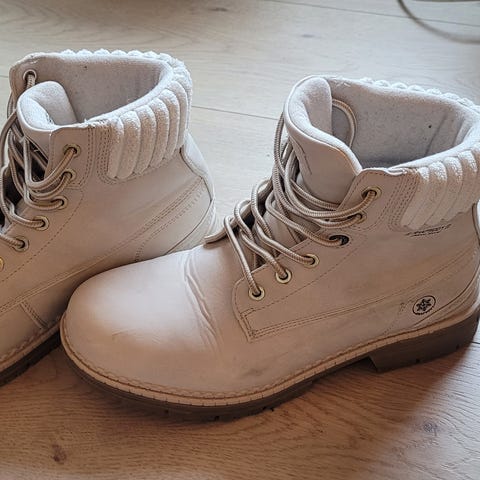 Timberland støvler i størrelse 38. Støvlene er laget av skinn med en solid gummisåle. De har snøring foran og polstret ankel for ekstra komfort. Brukt maks 3 g.