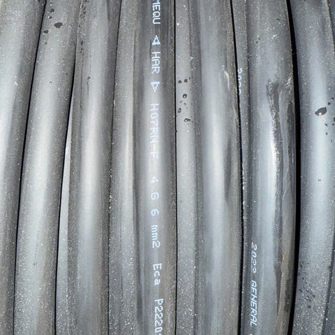 Ikke brukt gummikabel 4x6mm. Ca 36 meter.