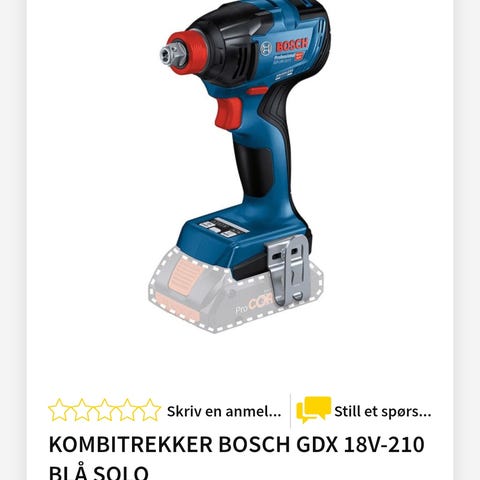 Bosch GDX 18V-210 er en kraftig 18V kombitrekker som funker like bra til skruing som til bolter og muttere. Med 210 Nm dreiemoment og smart 2-i-1 feste for bits og piper slipper du å bytte verktøy hele tiden. Leveres i praktisk Bosch koffert, uten batteri – perfekt for deg som allerede har Bosch 18V fra før.