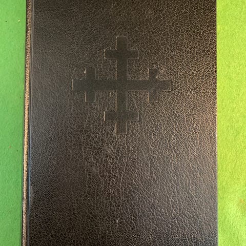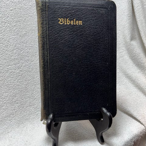 Klassisk bibel utgave i brunt kalveskinn med register. Nynorsk.
