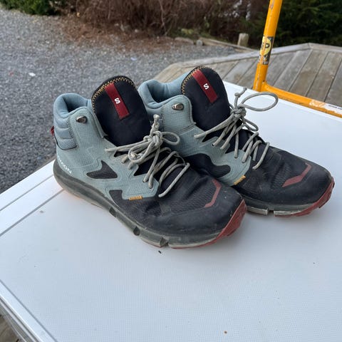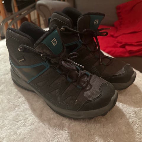 Salomon fottursko i størrelse 43 1/3, svart farge. Egnet for fotturer med solid konstruksjon og godt grep. Veldig lite brukt da de er en størrelse for små for meg. Kjøpte raskt nye i en størrelse større.