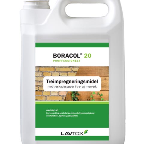 Til behandling av treverk mot muggsopper, råte og tre ødeleggende insekter samt alger, lav og mose på tre, mur, betong og lignende