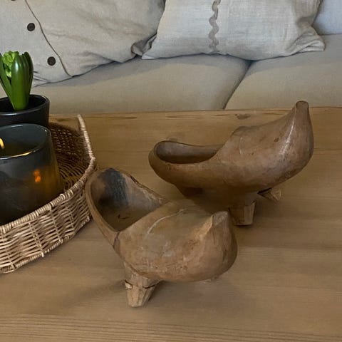 Selger en juledekorasjon, pyntegjenstand med nisse som deler ut gaver til to barn, i nostalgisk retro stil. Kun brukt i én sesong. Kjøpt på Byrkjedalstunet for 389kr. Ca 25cm høy