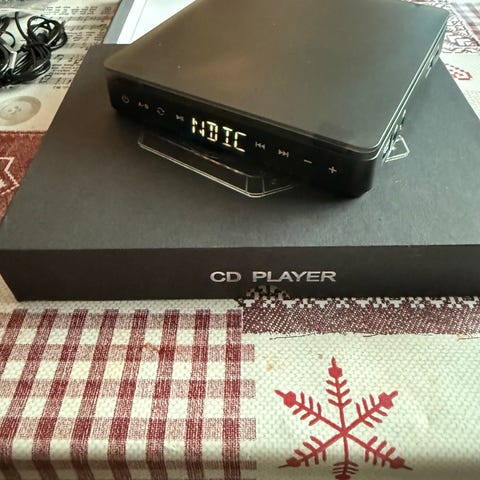 Cd/mp3 speler med radio, usb og sdkort. Kan også brukast på batteri.