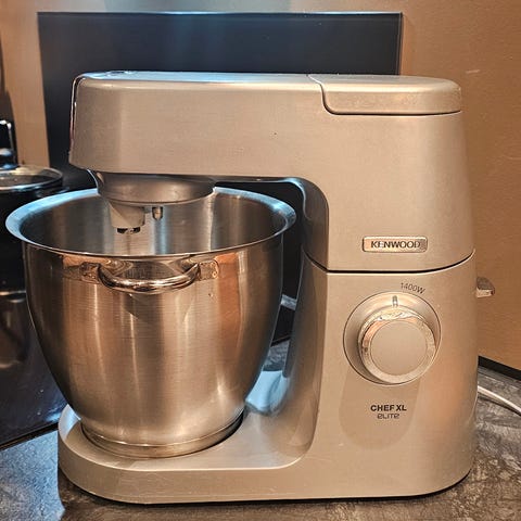 Kenwood Chef XL Titanium (modell KVL80) kjøkkenmaskin med 1700 watt motor. Sterk maskin med en stor bolle i rustfritt stål, som er designet for effektiv miksing og elting. Egnet for ulike bake- og matlagingsoppgaver.