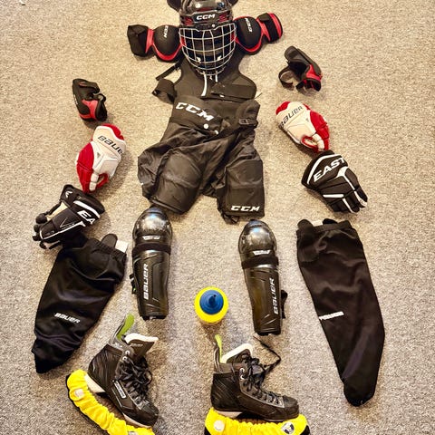 CCM Ribcor ishockey skulderbeskytter. Beskytteren er designet for ishockey og har svart og gul farge. Materialet og størrelsen er tilpasset for å gi beskyttelse under ishockeyspill.