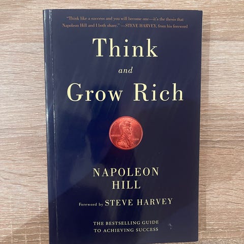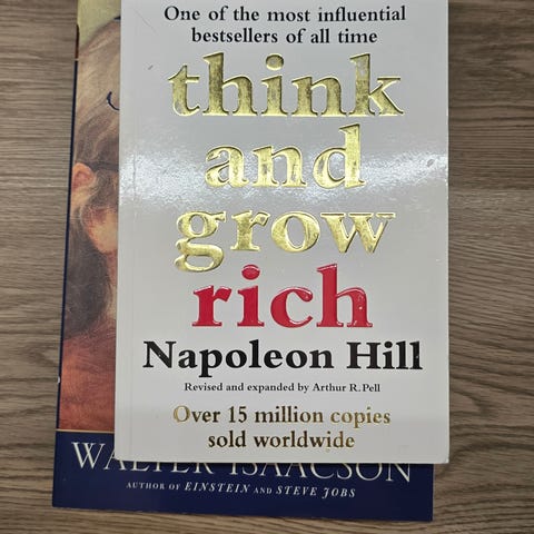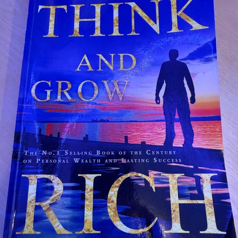 Napoleon Hill Success Habits bok med rød omslag. Inneholder prinsipper for større velstand, helse og lykke. Teksten er på engelsk.