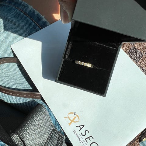 Nydelig gullring 9 carat med diamanter, 0,30. Størrelse 58.