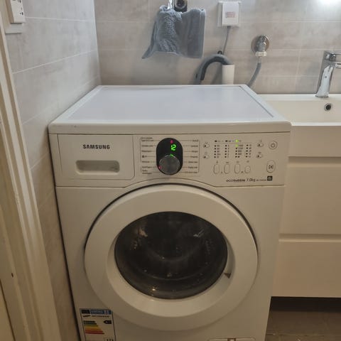 God gammal bråkete vaskemaskin . Vasker grundig, godt og reint. Den har noen skjønnhets merker (rust) på frontpanel som bilde viser.