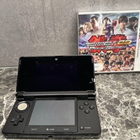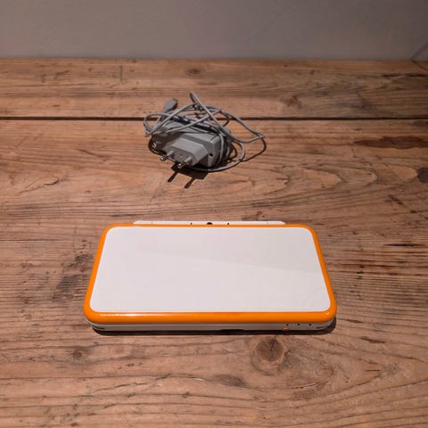 Veldig pent brukt Nintendo DS XL spillkonsoll med to skjermer, inkludert berøringsskjerm og kamera. Konsollen har innebygde høyttalere og knapper for navigasjon og spilling. Lader, penn og spill følger med.
