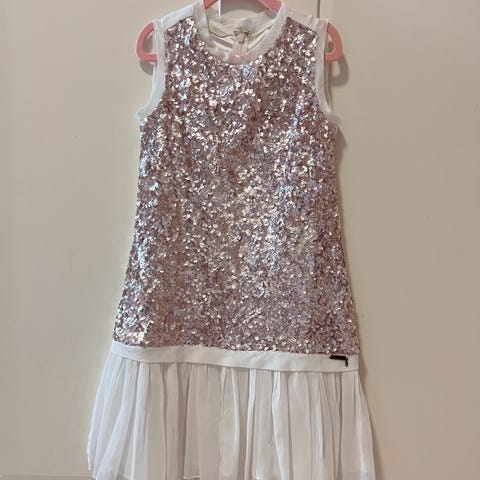 En drøm av en kjole, i lyseblått med gull detaljer. Perfekt til bursdag, nyttår, fest eller bare med en genser over slik at den dempes til hverdags skjørt.