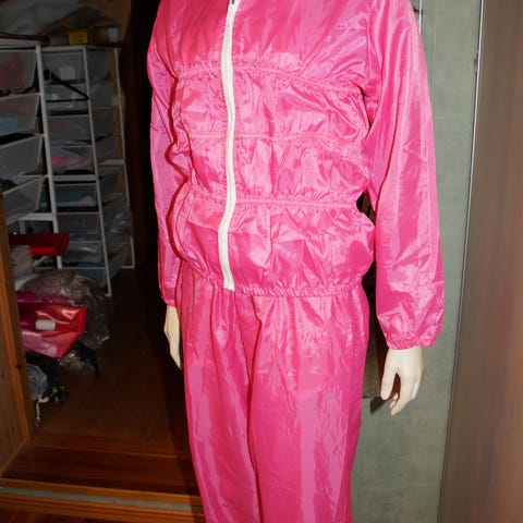 Lekker og søt dress å ha på seg på når man trener eller ha på seg på trenings studio for å gå ned i vekt, eller bare ha på seg og gå rundt i hjemmet og gjør husarbeid, du vil holde deg varm også. Kan nok også brukes som regnbukse /jakke.