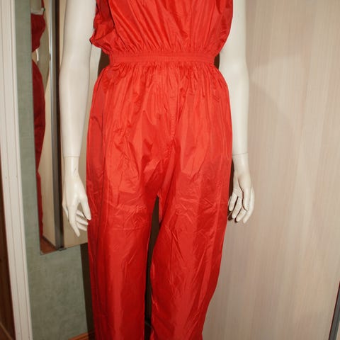 Lekker, blank og skinnende Sauna suit bukse / jumpsuit med skulder stropper og jakke.