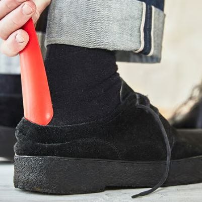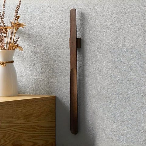 Pent skohorn i eik som henger på veggen ved hjelp av magnet.