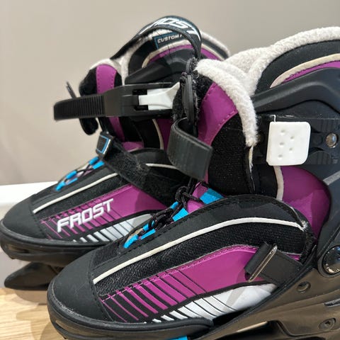 Frost vokseskøyter i størrelse 29-32. Litt bruksmerker her og der, men ellers fine og fungerer som de skal.