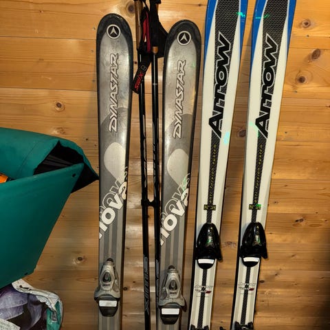 Atomic slalåmskiene og stavene er blitt pent brukt. Dette ble kjøpt nytt.