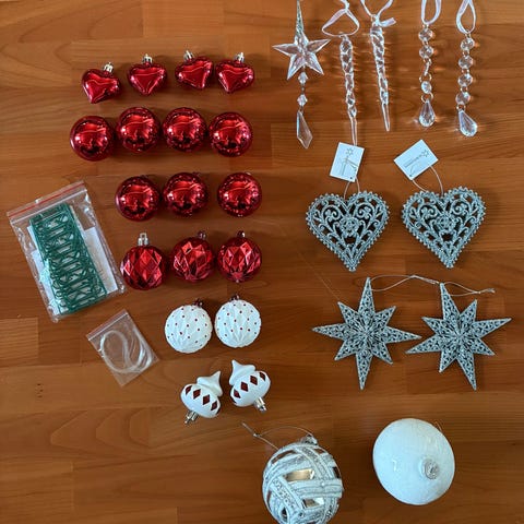 9 stk Julekuler i glass, blånyanser. Mørk gråblå, mørk blå og klart glass m litt blått i seg.
