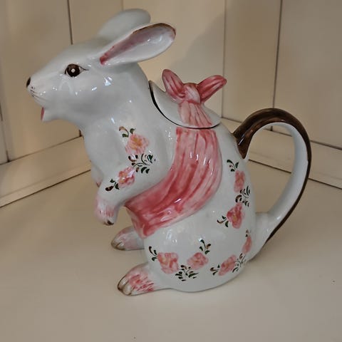 Nydelig gammel kopp med kaninmotiv fra 60-tallet. Høyde 10,5 cm. Kan sendes med PostNord for kr 69,-.