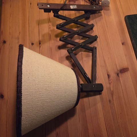 teak lampe, teakbordlampe, vintage lampe, retro lampe, bordlampe, skandinavisk design, mid century, mid century modern, MCM, 50-talls lampe, 60-talls lampe, retro interiør, vintage interiør, designlampe, stemningsbelysning, nattbordlampe, stuelampe, leselampe, original lampeskjerm, trelampe, teakfot