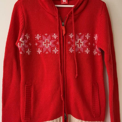 Genseren er brukt en del, men ser fin ut. Litt bruksmerker men fin til å være brukt. Pent godt brukt :)