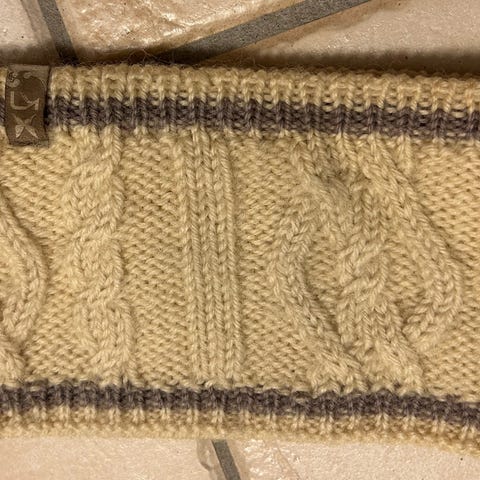 Ullgenser fra H&M strM , relativt stor i størrelsen. Kabelstrikk. Blanding av akryl og ullmaterialer