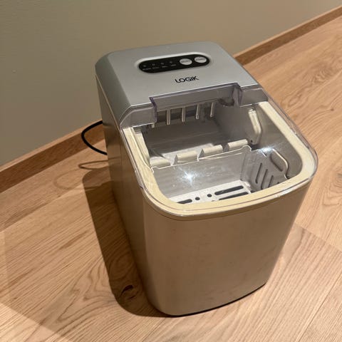 Selger isbitmaskinen min da den ikke brukes lenger. Den fungerer helt fint, og lager enten store eller små isbiter basert på hvilke instilling den er satt til. Den lager litt lyd