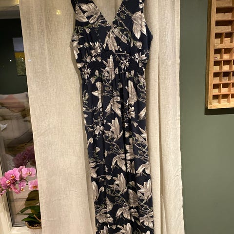 Floyd Roxan Butterfly sommerkjole i lys blå farge, størrelse XL. Laget av chiffon materiale. Kjolen har et sommerlig design med sommerfugl- og blomsterprint. Kjolen er aldri brukt og har fortsatt lappen på.