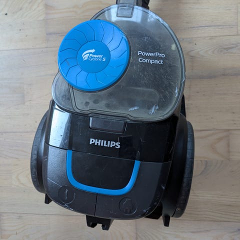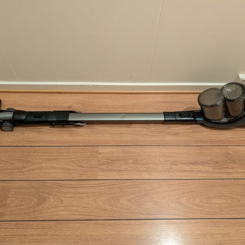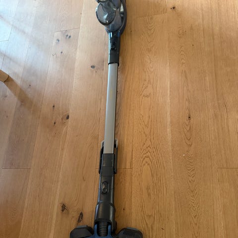 Denne har vi hatt noen år og vært veldig fornøyd med den. Batteriet holder til å støvsuge rundt 90kvadrat av huset før lading ved bruk på full sugehastighet