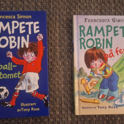 Francesca Simon Rampete Robin barnebok med illustrasjoner av Tony Ross. Inneholder to utvalgte fortellinger. Passer for barn.
