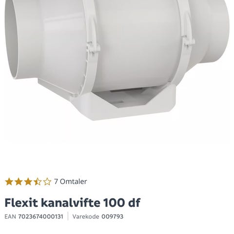 Flexit Silent Eco 100 TM ventilasjonsvifte med dimensjoner 100 mm, effekt 7,5 W, spenning 230 V, 50 Hz. Produktet er hvitt og har IP45 beskyttelsesgrad.