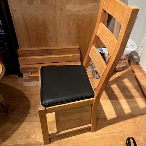 Spisebord og stoler i eik