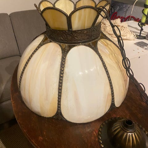 Taklampe kjøpt for ca. 3 år siden selges. Nederste kuppel knuste ved flytting, og må erstattes. Derfor selges billig. Må hentes.