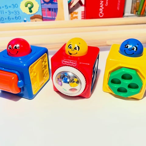 Selger et sett med fargerike og lærerike leker for små barn.