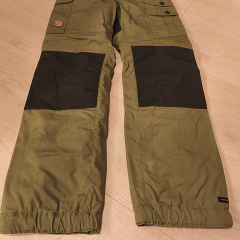 Forsterkninger på bakside og knærne, og Fjällrävens tradisjonelle lommer.