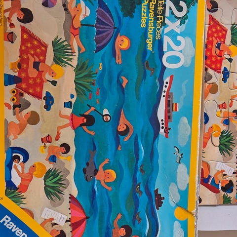 Ravensburger Wengen/Schweiz puslespill med 1000 biter. Størrelse på puslespillet er 69,9 x 49,6 cm. Motiv av Wengen i Sveits, utgitt i 1978 av Otto Maier Verlag.