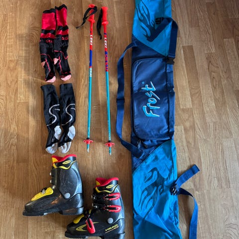 Pent brukte Head slalomski og støvler selges. Brukt av et barn i noen sesonger.