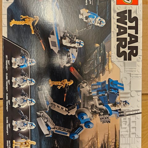 LEGO Star Wars 501st Legion Clone Troopers byggesett, modellnummer 75280. Passer for barn fra 7 år og oppover. Inneholder minifigurer av 501st Legion Clone Troopers og kjøretøy fra Star Wars-universet.