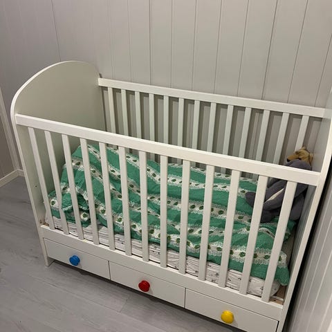 Sengen er derfor som den ses her, med Ikea madrass og dyne og pute.
