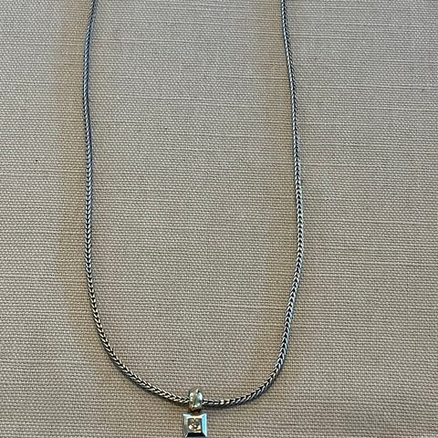 Nydelig sølvsmykke med små dekorative abaloneskjell med flott fargespill. Smykke ligger svært pent i halsen. Lengde kan reguleres. Kjøpt på Mestergull. Som nytt. Kan sendes. Kjøper betaler frakt.