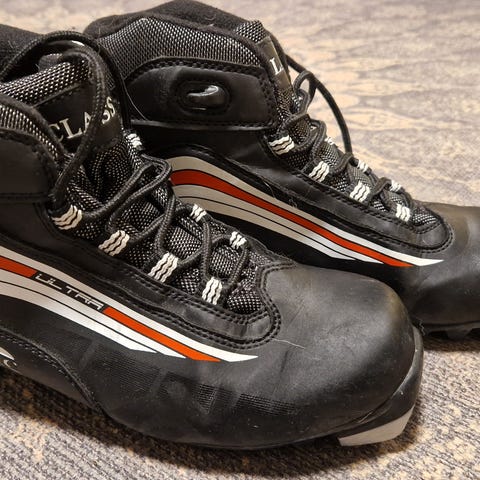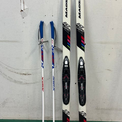 Skipakke barn. Fischer felleski 130cm og Swix staver 100cm