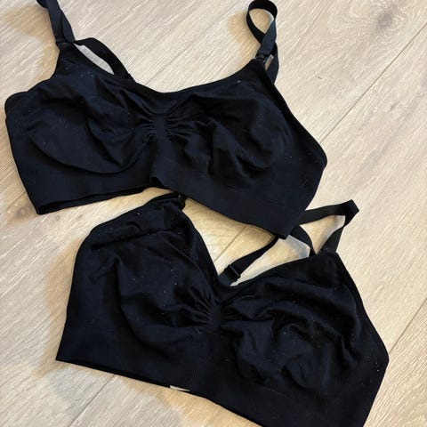 2 lite og pent brukte ammebh fra Lindex, str. L. Selges samlet. Lappen er klipt av. Mykt deilig materiale.